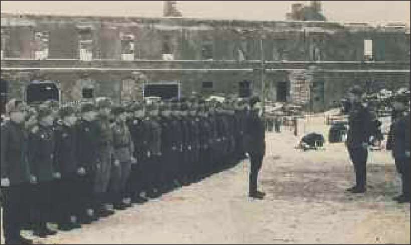 Построение 2-ой эскадрильи в освобожденном Смоленске. Адъютант докладывает комэску А. Дрыгину (справа) о готовности разведчиков к боевым вылетам.