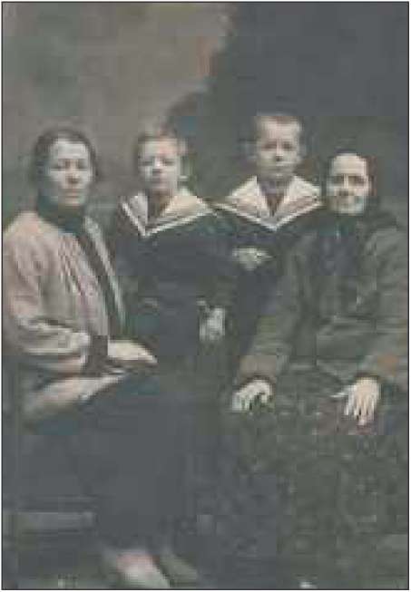 Я —малыш с братом Толиком (в центре справа). Мама (сидит слева) и бабушка Ефросинья – внучка крепостной скотницы