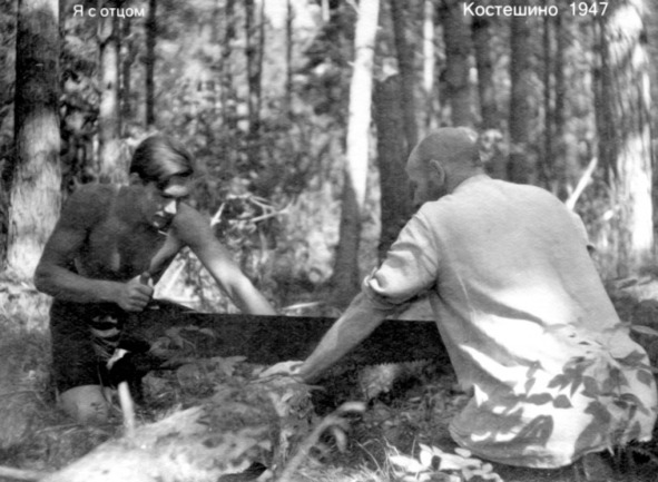 Весной 1947 года я досрочно сдал экзамены за первый курс и снова поехал в Костешино, в этот раз на все летние каникулы. К этому времени родители купили небольшой домик на краю деревни, рядом с домом дяди Миши. Дядя Миша— брат моего отца, тот самый, вместе с которым мы жили на хуторе Косой Брод. Он жил теперь в Костешине с тётей Женей, своей второй женой, и сыном Юрой. Тётя Саша, мать Юры и других детей дяди Миши, умерла во время войны.