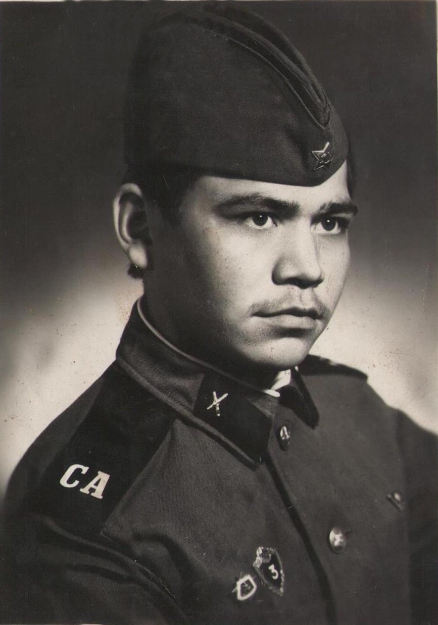Янгорчинской средней школы был призван на действительную военную службу. Это был первый весенний призыв, даже выпускные экзамены пришлось сдавать экстренно. Уже 24 июня в Канашском республиканском призывном пункте прошел повторное медицинское обследование. Летом 4 июля 1966 года эшелон с призывниками прибыл на станцию Тюра-Там Казахской ССР. Вокруг бесконечные пески, темные люди, загорелые солдаты в панамах и стоит невыносимая жаркая погода.