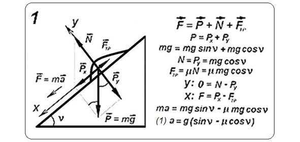 Py = Pcos𝝂 – составляющая силы тяжести по оси Y,