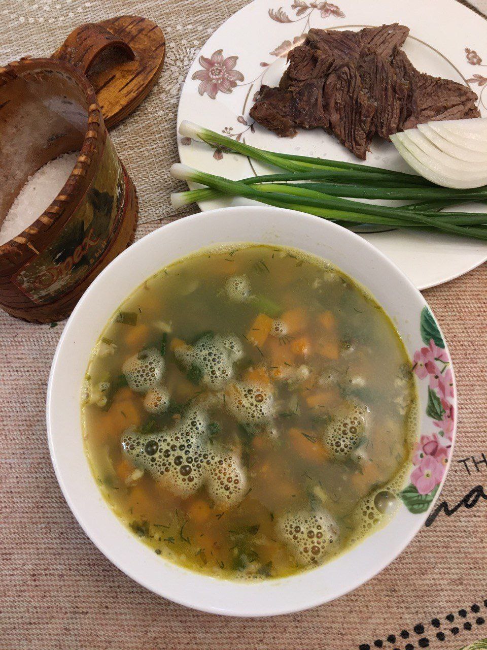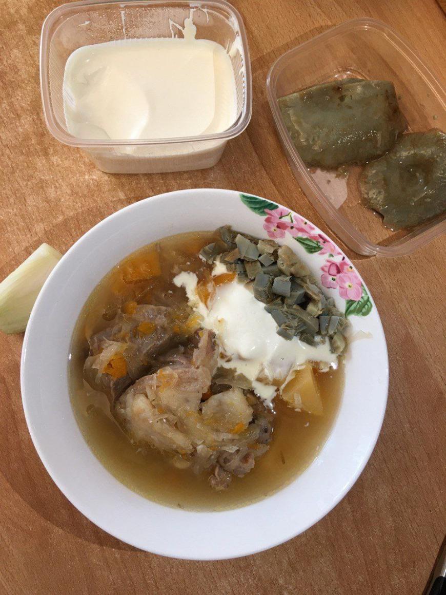 Лёгкий, но сытный, суп на бульоне из казылыка (домашней конской колбасы)