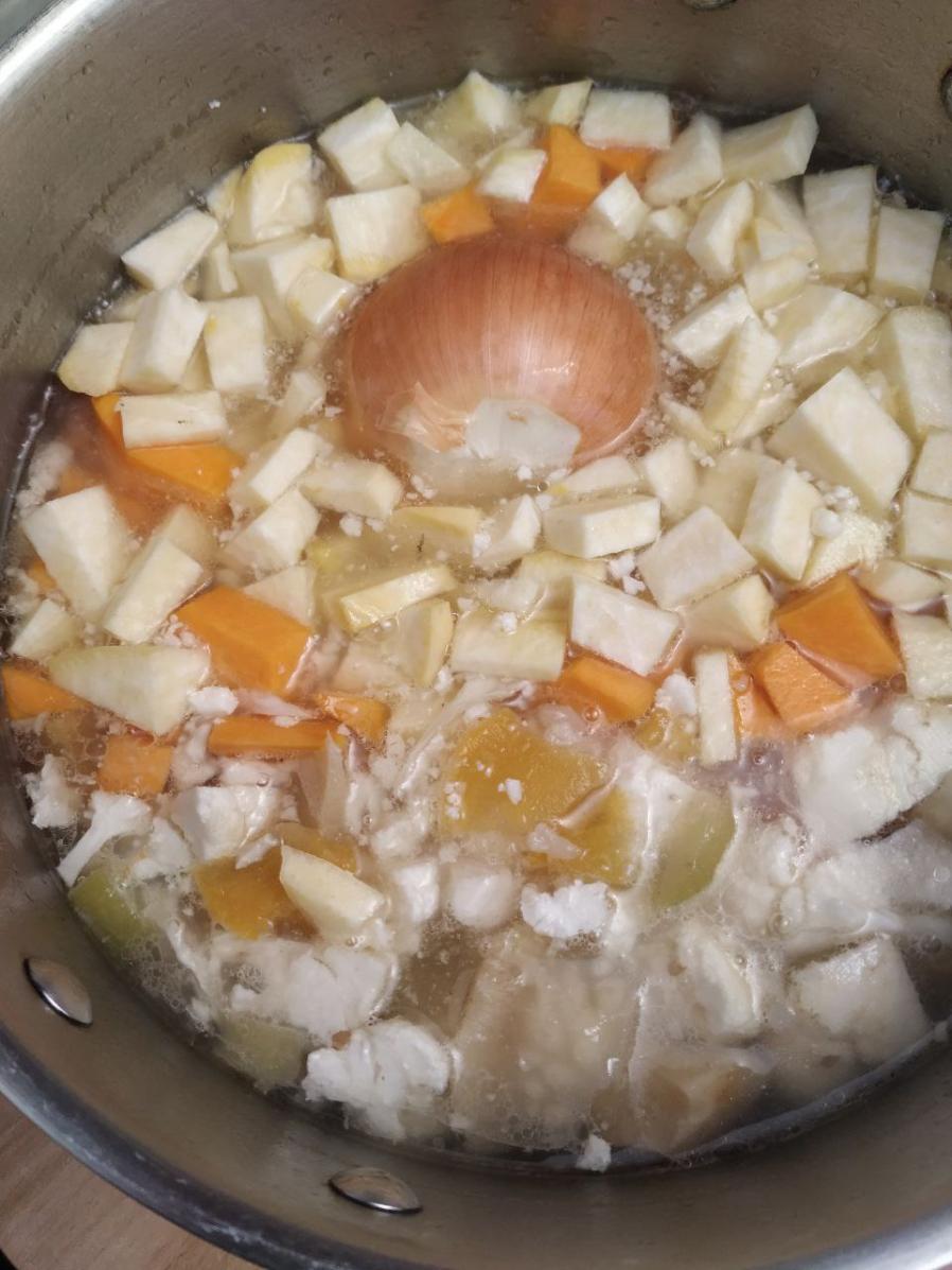 Быстрый суп – пюре с бурым рисом, тыквой, репой и цветной капустой.
