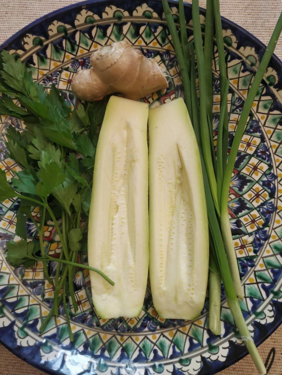 с репой, корнем сельдерея, тыквой, корнем петрушки, корнем пастернака, кабачком, цукини.
