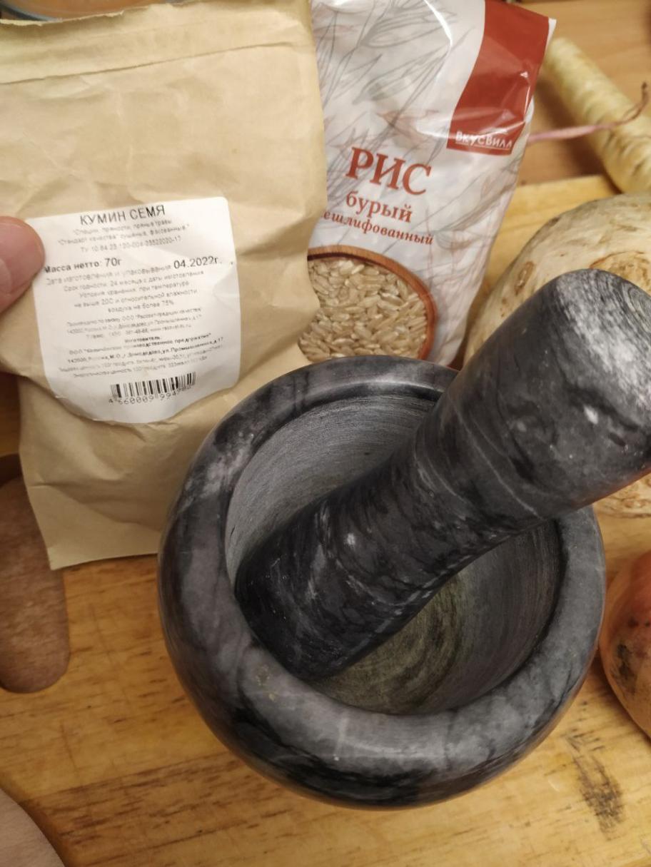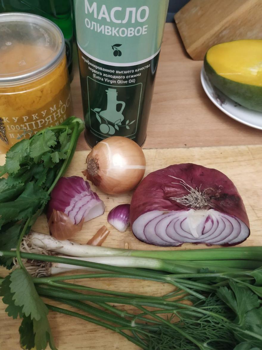 Ингредиенты: капуста свежая, тыква, репа, куркума, красная чечевица, специи (бадьян, гвоздика, розмарин, перец, зира) в мешочке.