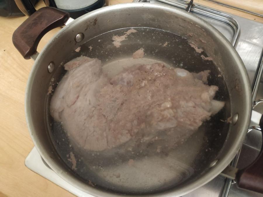 1. Индейка филе (порция Вкусвилл) – первая "техническая" варка (!) – доводим до кипения, воду сливаем.