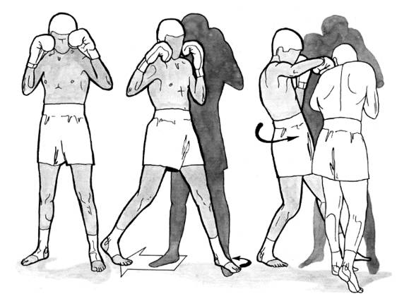 Используется для того, чтобы уйти от более сильного правого удара и принять удобное положение для проведения левого хука и левого прямого. Это движение безопаснее, чем движение влево, но труднее в исполнении.