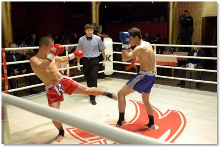 1993-11-27. Новосибирск. Ресторан «Центральный». Турнир РЛМТ. Дулат Таженов (Караганда) vs Андрей Рогонов (Новосибирск). Рефери в ринге Санит Конак (Таиланд). Подробнее – прил. стр. 320