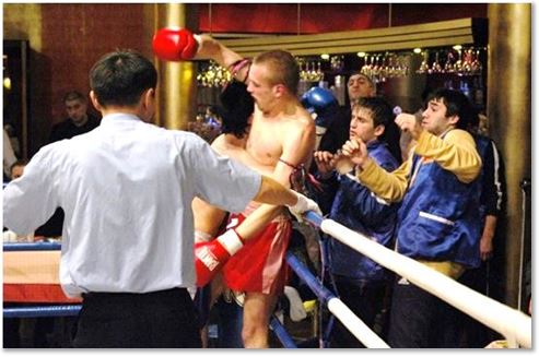 2004-11-19. Москва. «RAMTL в Капитализме». Муслим Абдуллаев (Махачкала) vs Александр Шлакунов (Полоцк). На заднем плане боковой судья Зориг Будаев (Москва). Подробнее – прил. стр. 408