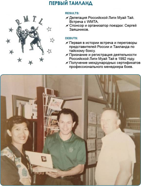1996–2007 гг. Москва. Федерация Тайского бокса России (ФТБР) и Российская Лига Муай Тай (РЛМТ).