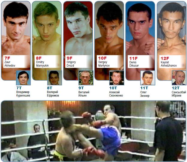 Первый российский чемпион мира IFMA 1994 г. по тайскому боксу среди любителей – Сергей Митяев (свыше 91 кг, Колывань, Новосибирская область, тренер Валерий Кремнев), погиб в 2002 г. Подробнее – прил. стр. 330 (см. видео).