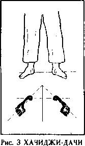 Стойка выбирается по обстоятельствам, но она должна быть естественной и должна позволять вам свободно перемещаться в любом направлении. Условно говоря, мысленная вертикальная плоскость (в дальнейшем называемая средней линией), проходящая через ваш центр тяжести и центр тяжести противника, определяет положение вашей стойки относительно противника. В зенкутцу‑дачи (передняя стойка) есть важное различие между стойками в момент подготовки к проведению приема и в момент его проведения. В первом случае колено стоящей впереди ноги согнуто, а мышцы бедер и икр обеих ног расслаблены, чтобы можно было делать гибкие и быстрые движения. А в момент проведения приема мышцы ног должны быть напряжены, чтобы усилить соприкосновение ступней с полом и придать силу движениям. Более того, в зенкутцу‑дачи положение туловища не должно быть настолько низким, чтобы мышцы напрягались и становились закрепленными.