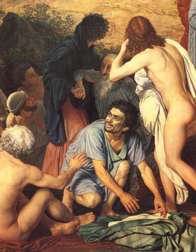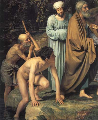 Остановившись на Вениамине, Иванов совсем собрался уже писать большую картину по имевшемуся у него эскизу. От этой мысли удержал его находившийся в то время в Риме известный немецкий художник Овербек. По мнению последнего, сцена, выбранная Ивановым, не могла служить сюжетом для большой картины, представляя только эпизод из жизни Иосифа. Овербек находил, что сюжетом большой картины должен служить не эпизод, а один из крупных, выдающихся моментов истории – целая поэма. Слова эти показались молодому художнику настоящим откровением. Иванов стал искать новый сюжет для своей картины, и вот что писал он в 1833 году в Общество поощрения художников: