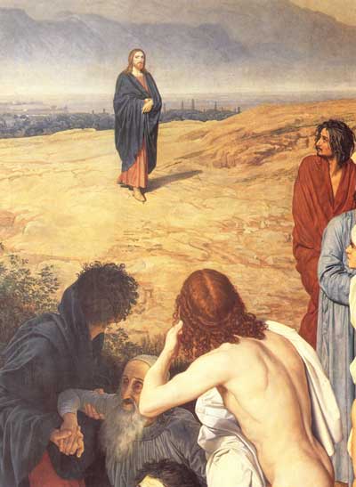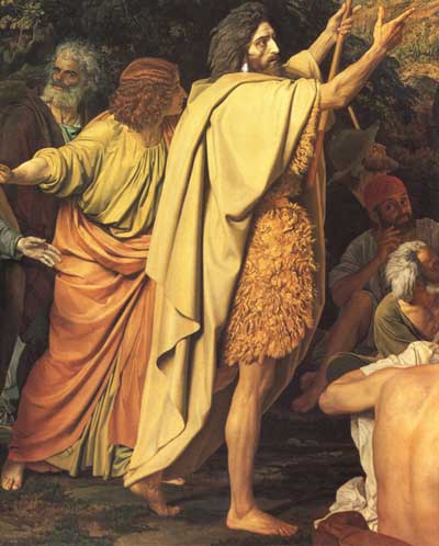 «Сие представление должно располагать зрителя к благоговейному и отрадному испугу. Умиление ожидавших я бы хотел выразить в разных видах. Стоящие подле Иоанна Крестителя ученики изумлены его словом; один из них, Иоанн, который после был любимым апостолом Иисуса и евангелистом, как моложе, даровитее и невиннее, с живостью подвигается, чтобы выслушать речь Иоанна. Тут вдова схватилась встречать Иисуса. Преклонных лет женщина в испуганном любопытстве столкнула записывающего слово Иоанна; далее блудница, скорбящая о грехах своих, суетной рукой ищет сбросить хламиду, печально ее закрывающую (по обычаю того времени); возмужалый, достаточный еврей, слушающий слово Иоанна, ищет скважину между суетной толпой, чтобы увидеть грядущего Мессию. Юродивый старик, обтирающийся грешник и юноша уставили взоры свои следить за движением и словами Иоанна. Правее кающийся повергся на землю столь сильно, что общая суета не в силах отвлечь от настоящей минуты его покаяния. Впереди обувающийся, достаточный из слушающих, с испугом обратился к почтенному старцу, подле его сидящему, коего сладкое внимание обращено к утешительному слову Иоанна.