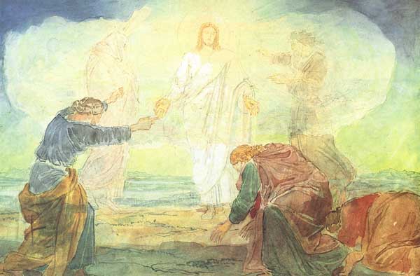 Остановившись на данном сюжете, Иванов, однако, не сразу решился приступить к картине. Он считал себя слишком мало к ней подготовленным и прежде хотел испробовать свои силы на большой картине менее сложной композиции. В начале 1834 года он начал картину «Явление Христа Марии Магдалине после Воскресения». В конце 1835 года картина эта, написанная в натуральную величину, была окончена и выставлена сначала в мастерской художника, а затем в Капитолии. Она очень проста по содержанию и своими линиями, а также превосходным исполнением, напоминает даже работы итальянских мастеров XIV века. Мария, узнав Христа, быстро бросается к его ногам, а он запрещающим движением правой руки останавливает ее, как бы произнося: «Не прикасайся!» Голова Магдалины в профиль, с полуоткрытым ртом и глазами, полными слез, замечательно хороша, но в образе Христа еще не видно стремления художника к созданию нового типа, какой мы находим впоследствии; он красив, но не характерен. Над этюдом к «Магдалине» Иванов долго работал, более всего над сочетанием улыбки и слез. Любопытно описывает сам Иванов, каким образом писался этюд.