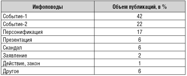 Информационные поводы – важнейшая категория анализа. Они наглядно демонстрируют, какие конкретно элементы в деятельности благотворительных фондов в наибольшей степени являются «новостями, достойными внимания» аудитории – по мнению журналистов и медиаменеджеров; насколько конкурентоспособны эти элементы в сравнении с новостями других сфер. Крайне важна такая информация и для самих фондов: способны ли они создавать сильные инфоповоды? Нуждаются ли они в переосмыслении своих связей с общественностью? Наконец, насколько тактика пресс-служб фондов требует коррекции?