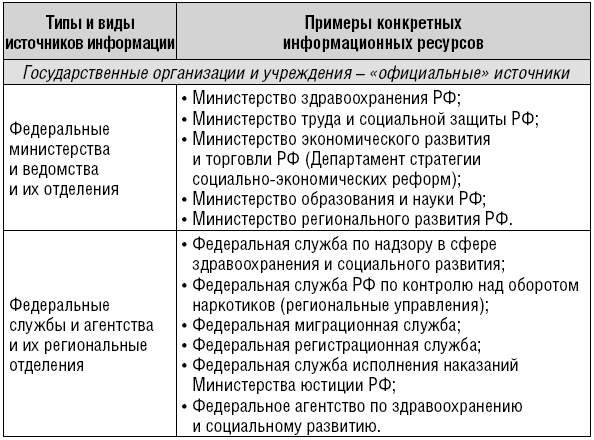 • информация официальных государственных источников информации используется по возможности в сопоставлении с другими видами информационных ресурсов; важно максимально расширять поле поиска источников;