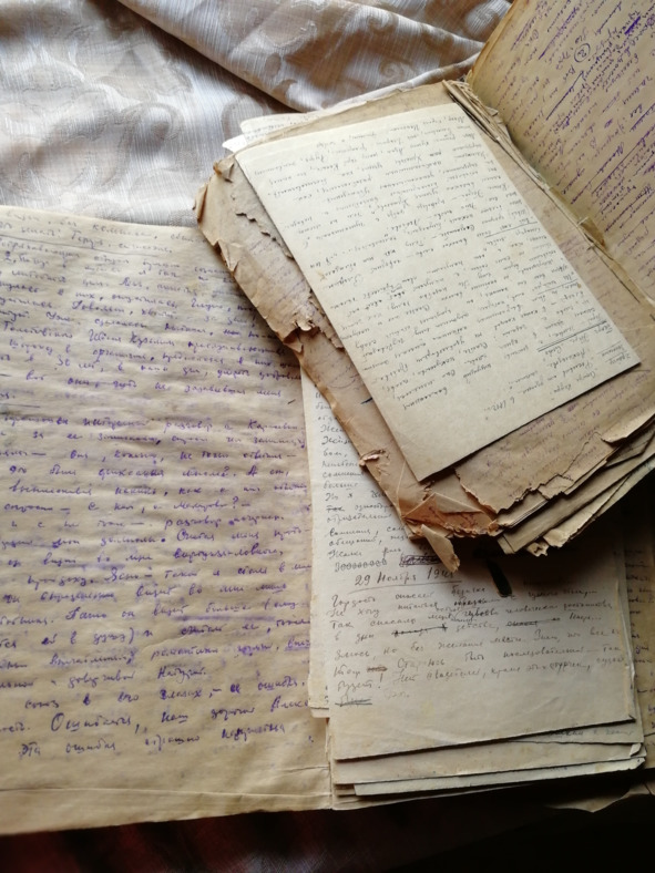 Клавдия Ивановна Макарова родилась в 1919 году в селе Манихино Истринского района. Под Москвой. В семье ее звали Галькой. При крещении она была записана Клавдией, но бабушка, носившая ее в церковь, дома забыла сказать об этом. Да и фамилию священник записал её на материну, а не на отцовскую. Галина Суханова получила паспорт по церковным записям на Клавдию Макарову. Её мать – неграмотная батрачка – Пелагея – родила 7 человек детей. Мать была старшей. Младшенький – Федюшенька – умер маленьким. Отец был портным. Он возглавлял артель по пошиву верхней женской одежды. После окончания школы, мать поступила в Московский институт цветных металлов и золота. Я помню рассказы матери, как она сдавала экзамены невероятно голодная. Моя мать прошла через голод после гражданской войны (она знала, что такое жмых не понаслышке), арест отца, потерю матери в 18 лет, вторую мировую, проложившую линию фронта в Истре. Они выкопали землянку, окоп буквой Г. В дом попала бомба. Он сгорел, но семья – дети и отец были в этой землянке. Сожжённый дом, 11 дней оккупации, гибель мужа на фронте, пеший переход в Москву, окончание института, 25 лет работы в литейном цехе… А она мечтала стать писателем… Ходила на встречи и уроки с Алексеем Толстым, которые он проводил на заводе. Институт закончила после войны. Заочный. Она писала дневники. До рождения нас, двух дочек от разных отцов. Я была поздним ребенком. Матери было 40, когда появилась я. Замуж она не выходила. Алименты не получала. Подрабатывала шитьем на заказ по выходным. Она ни разу не видела моря… Вот куски из ее дневников… То, что я смогла разобрать…