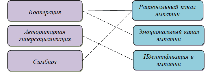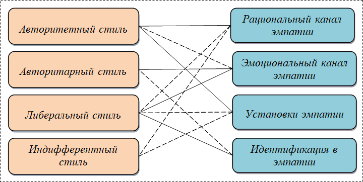 Рис. 5. Взаимосвязь между стратегиями семейного воспитания особых детей и уровнем развития эмпатических способностей матери