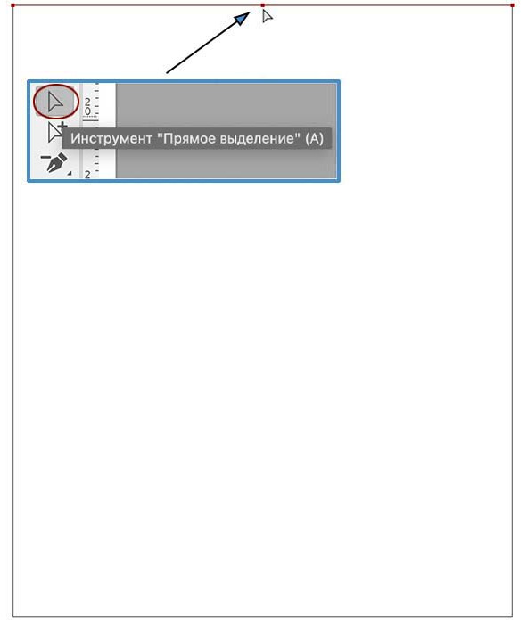1) Кликните на инструмент «Прямое выделение» в панели «Инструменты».