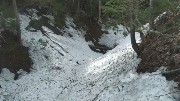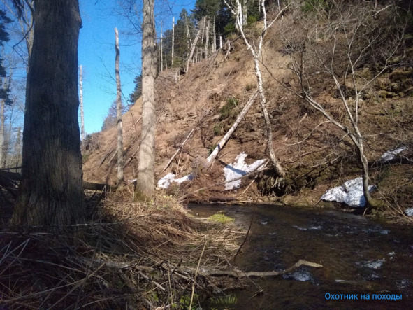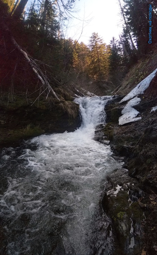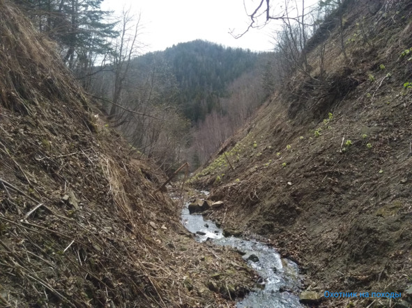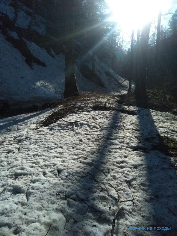 Первые метры дались слишком легко, чтобы рассчитывать на это впредь. Жирная пенка снега улеглась на русле. Сторона была южная, месяц май и рассчитывать на какую-то плотность снега не приходилось, что с успехом и было продемонстрировано. Несмотря на «штору» на верху голенища, которая даже затягивалась, снег все равно проваливался внутрь сапога, хоть и не весь. Два раза ругался грубыми словами наш путешественник, именно столько раз он глобально уходил под снег всеми ногами по самые семейные драгоценности. Потом долго «выплевывал» снег из сапог пребывая журавлем посреди снежной обители. Меньше двухсот метров были наглядным показателем всех подобных ручьев с южной стороны. Путник очень глубоко задумался над вопросом ухода на ручей ведущий на Скалистый, ведь он тоже был южной стороны и совсем недалеко.