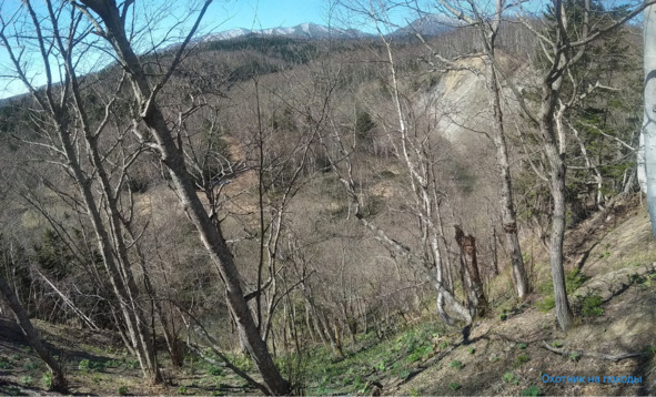Крутой подъем в косогор, где чистый подлесок шуршал под ногами. Не было привычных сахалинских зарослей, остались они в стороне и давали простор идти. Путник не больно то торопился, наслаждение текло у него по сосудам. Птицы гоготали, лес гол и дает видеть далеко, температура подходяща для хода, питание обеспечено прекрасным завтраком, так что не было повода спешить. До озера и завтра можно доползти, а может даже и нужно.