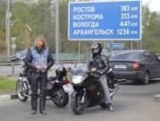 Познакомились с двумя байкерами на машине, разговорились, они обещали проводить короткой дорогой до города, и показать место сбора мотоциклистов, местную смотровую площадку. Мы попрощались с оставшимися попутчиками, они поехали домой, и остались вдвоем с Верой. Когда выехали на короткую дорогу, та что была вначале, показалась бы асфальтом по сравнению с той по которой нам предстояло ехать. Ухабы и колдобины в несколько раз глубже и больше, резкие повороты, спуски и подъемы, к тому же начали собираться тучи, и стало заметно темнеть. Тут мне пришлось вспомнить юность, увлечение кроссом по пересечённой местности, попрыгав и наломавшись в поворотах, проехали километра три, которые показались бесконечными, потом выехали на бетонку, и ещё долго ехали как на поезде, стуча колёсами на стыках. В городе долго искали мотоциклистов, никого не встретили, решили ехать дальше, в сторону Переславля Залесского. Уже почти стемнело, начал накрапывать дождь, дорога от более или менее нормальной, часто переходит в резко разбитое состояние, ехать в темноту, в дождь становится опасно. Километров через двадцать, наткнулись на придорожный кабачок с гостиницей, как только загнали мотоцикл в гараж, начался сильный ливень. Покушали, устроились, первый час ночи. Потом позвонил диакон Георгий, сказал, что в Борисоглебовском будет праздноваться 25-летие иерейской хиротонии, и 45-летие со Дня рождения его, Архиепископа Кирилла Ярославского и Ростовского, нас там ждёт отец Георгий.