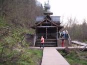колокольный звон. Подходили люди, спрашивали кто мы, и что обозначает Мото Храм. Омыли лицо и руки в источнике, попили, зашли в храм на службу, помолились, поставили свечи и решили ехать дальше.