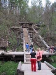 После того как часть людей уехали в Москву, мы с Сашей и двумя девушками его подругами, поехали на источник «Гремячий ручей» Доехали довольно быстро, но когда съехали с трассы, началась ужасная просёлочная дорога, плиты вперемежку с колейной дорогой, километров пять, ухабы и глубокие провалы колеи, сильная пыль. Тут пригодилась посадка и просвет чопера, и то порой цепляло глушителем, спорт там не пройдёт. Довольно популярное место паломничества, а дорогу сделать не могут, представляю, что там творится после дождя…