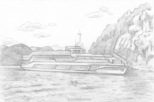 Утро выдалось прохладным и туманным. Сквозь дымку раздался громкий гудок теплохода, и многочисленные туристы в брезентовых куртках и плащах стали по трапу друг за другом заходить на палубу.