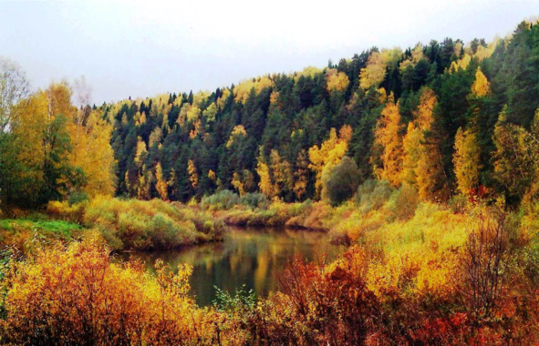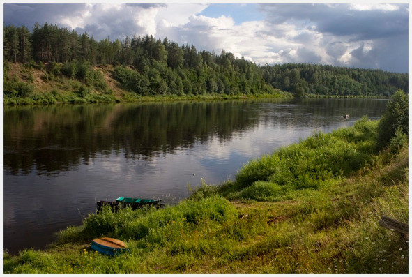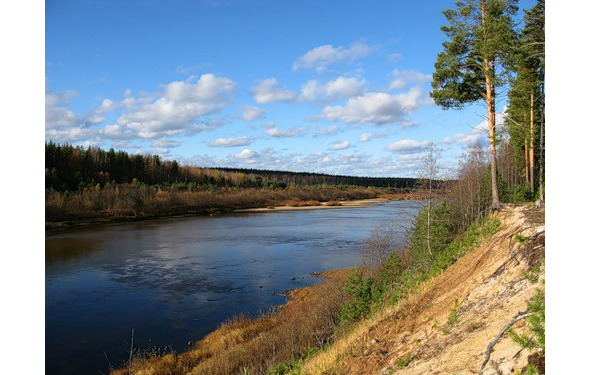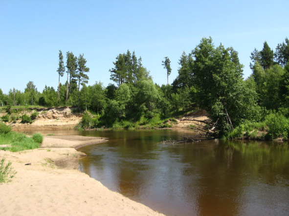 Лес, реку, песчаный берег,