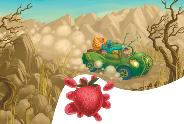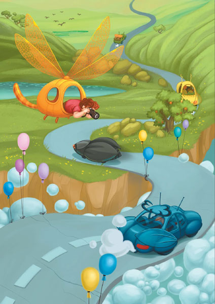 Скоро они нагнали «Лупоглазиков», на чьих физиономиях радость сменилась удивлением и злостью. Ящерица так растерялась, что кинула шишку вслед «Пузатым жукам», которые их обогнали, то есть прямо себе под машину. Присоска наскочила на препятствие, не смогла приклеиться, и нога-пружинка подломилась. Жукап плюхнулся на колёса, с трудом преодолевая преграду из собственных ног с присосками.