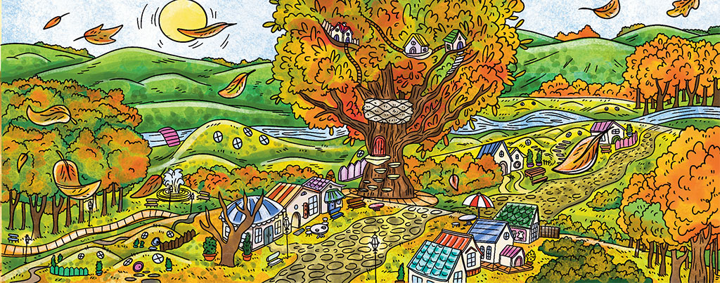 «Как странно устроен мир, – думал лисёнок, забираясь по веткам-ступенькам, – лисы линяют весной, а деревья осенью».