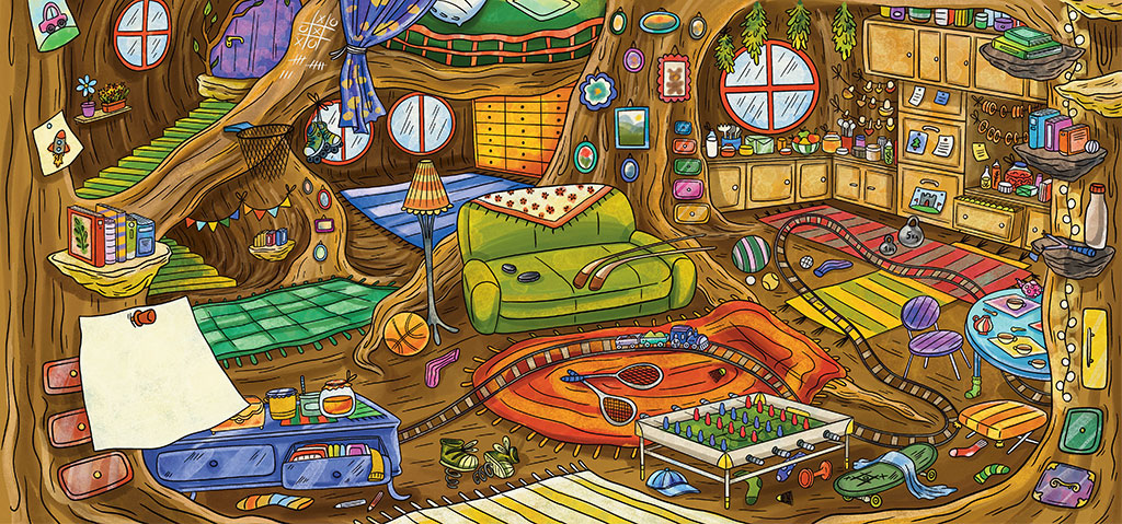 Дом дедушки Всезная и бабушки Хлопотуньи, а точнее, дедушкин сарай – это именно то место, где наверняка мог лежать компас. Мудряш бежал что было сил и вскоре оказался перед красной дверью. У входа в сарай дедушка устроил сигнальное трещало. Нужно было наступать ногой на педаль, она приводила в движение деревянный вал со щупом, вал крутился, а щуп бил по обрешётке вала, от чего получался треск. Мудряш обожал дедушкины механизмы – они приводили его в восторг. Он с удовольствием жал на педаль и слушал трещало. Наконец дверь открылась, и лисёнок прыгнул внутрь.