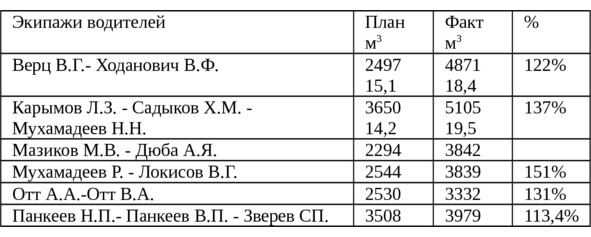 Большой вклад в общую трудовую победу внесли экипажи водителей: