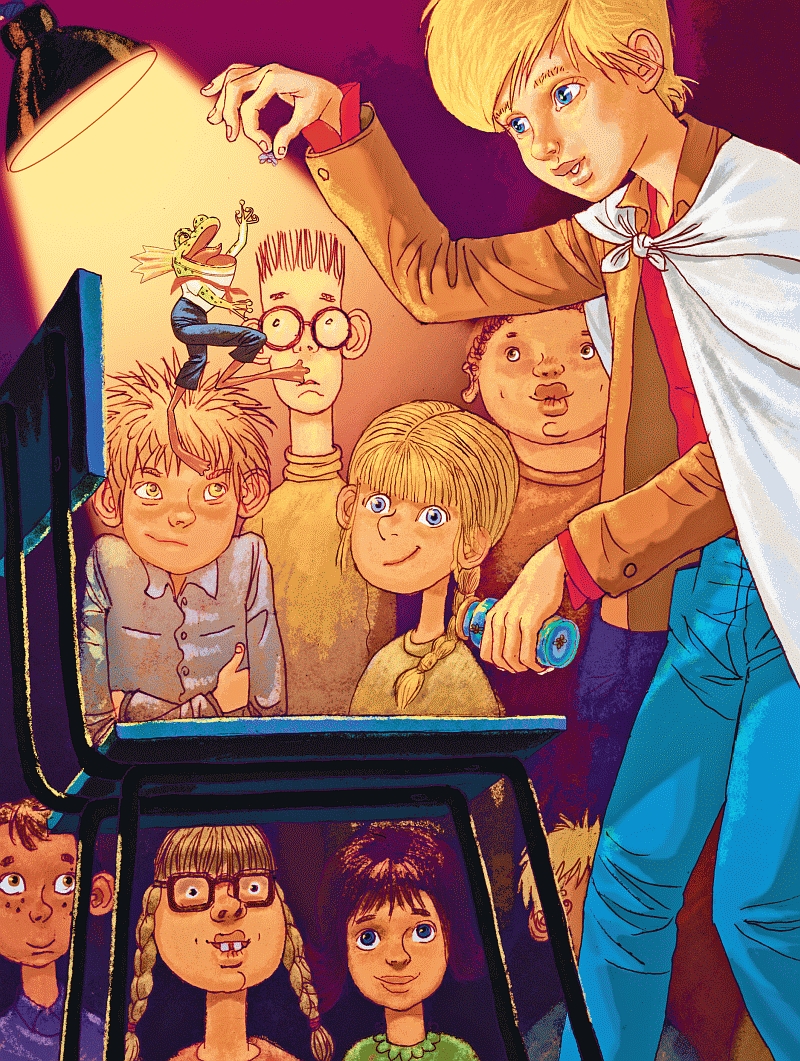 Тут ребята уже со своих стульев повскакали, а некоторые кинулись к сцене, чтобы посмотреть, а не на резиночке ли лягушонок.