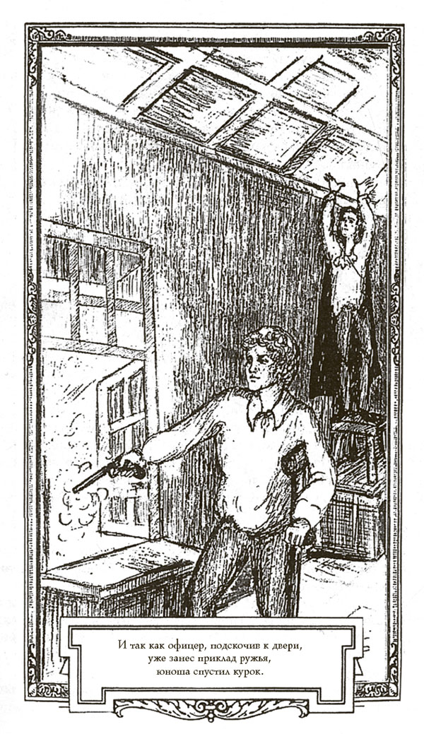 И так как офицер, подскочив к двери, уже занес приклад ружья, юноша спустил курок. Пуля сшибла каску с головы офицера, и тот, яростно выругавшись, отбежал на несколько шагов.