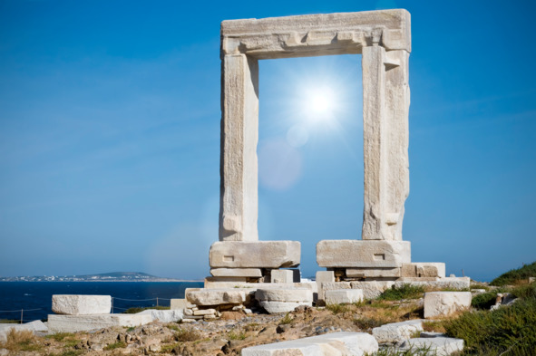 – Это Кастро, венецианская крепость, основана рыцарями, что вернулись из крестовых походов. Когда-то венецианцы правили островом. Туда можно подняться, оттуда отличный вид на бухту и на Портару. Там археологический музей и винные погреба, стоит посетить! Вон, кстати, справа, – юноша показал рукой в направлении небольшого островка-сателлита, к которому вела узкая насыпь. – Видите огромную квадратную арку? Это и есть знаменитые ворота храма Аполлона.