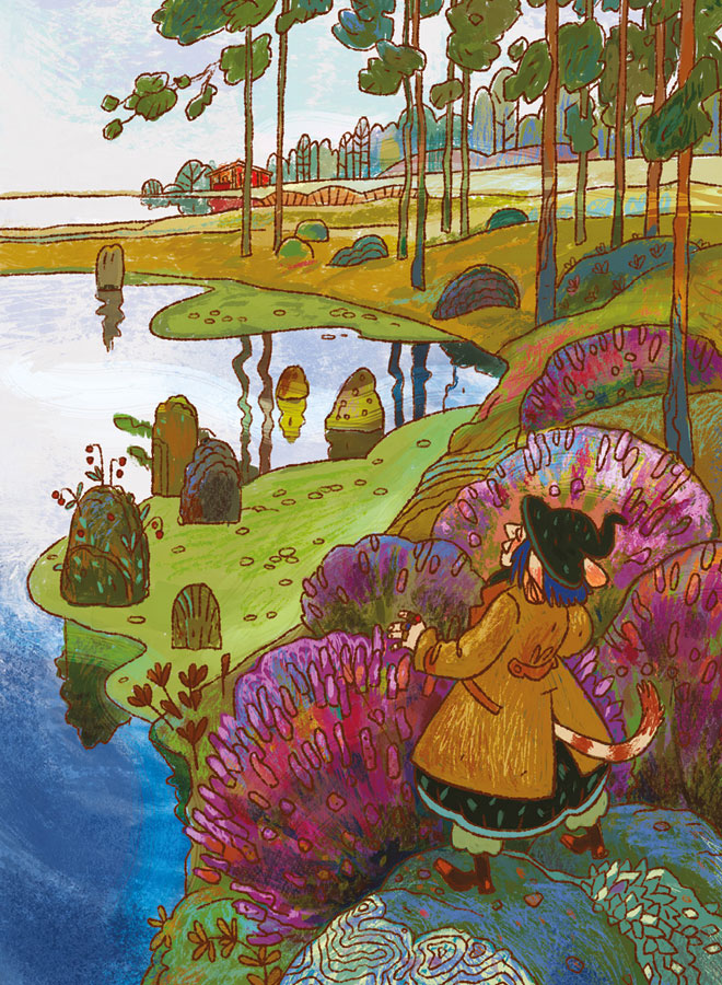 Несколько дней спустя госпожа Тасси бродила по северному болотцу в поисках багульника. У неё в шкафах завелась моль, а против моли ветки багульника – лучшее средство, уж поверьте. В Лесу четырёх озёр он рос на болотах за озером Оменаярви.