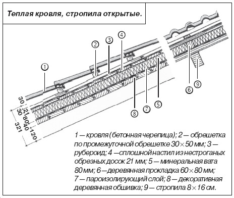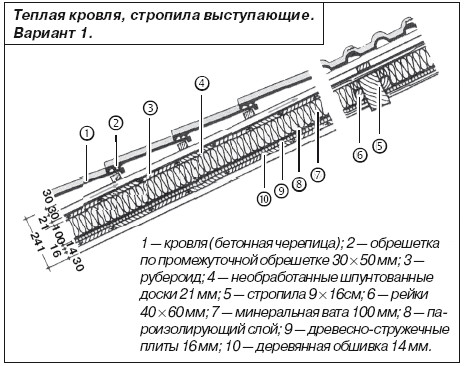 Различные исполнения крыши. В целом исполнение крыши зависит от ее конфигурации, уклонов скатов, типа несущей конструкции, вида кровельного покрытия, а также требований, предъявляемых к тепло- и звукоизоляции.