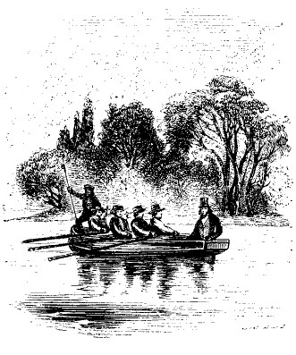The boys began to stop, shouting to one another, "Stop!" "Stop!" In a few minutes all was still again. The boys began to take their oars in and one of them rose and said,