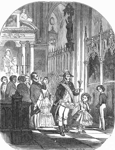 The feeling of amazement and awe which the aspect of the interior of the cathedral first awakened in the minds of our travellers was for a moment interrupted by a man in a quaint costume, who came up to them, holding a large silver salver in his hand, with money in it. He said something to Mr. George and Rollo in German. They did not understand what he said; but his action showed that he was taking up a contribution, for something or other, from the visitors who came to see the church. Mr. George paid no attention to him, but walked on.