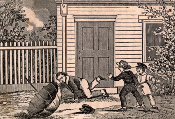 Just at this moment, Rollo's cousin James came into the yard, and Rollo ran to him, to explain to him about the parachute. After describing to him the construction of it, and its use by men who go up in balloons, he said he was going to get his father's umbrella, which would make an excellent parachute.