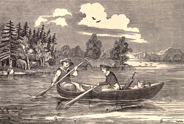 Rollo drew down the umbrella, and looked around. They were still at a considerable distance from the shore. Jonas extended his paddle out into the water as far as he could reach, and then drew it in towards him with several quick and strong strokes, as if he were endeavoring to pull the stern of the boat, in which he was sitting, round.
