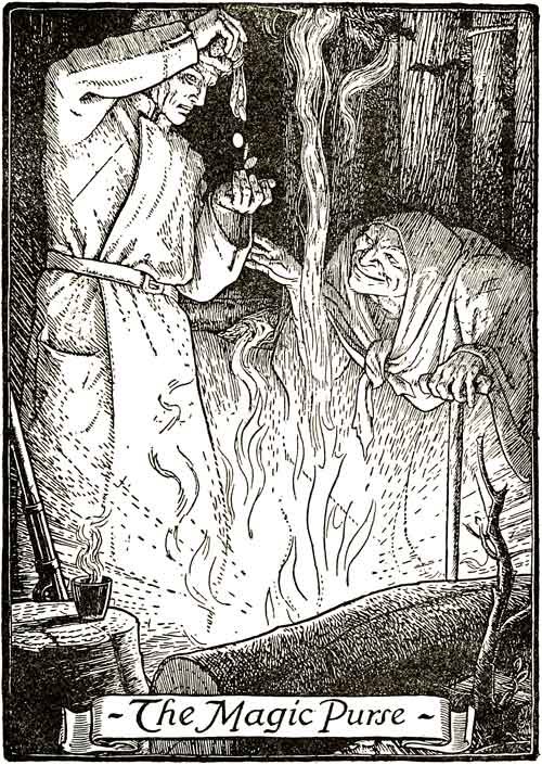 He took it, and, sure enough, whenever he held it up out came the gold pieces. So he thanked her very much, and off she went.
