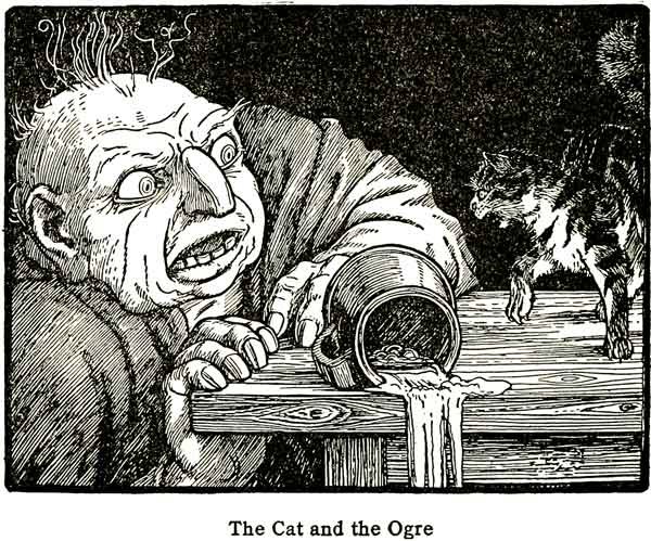 "I am too big to hide," said the ogre, "but my mother gave me a powder, and when I take that I can make myself as small as I like."