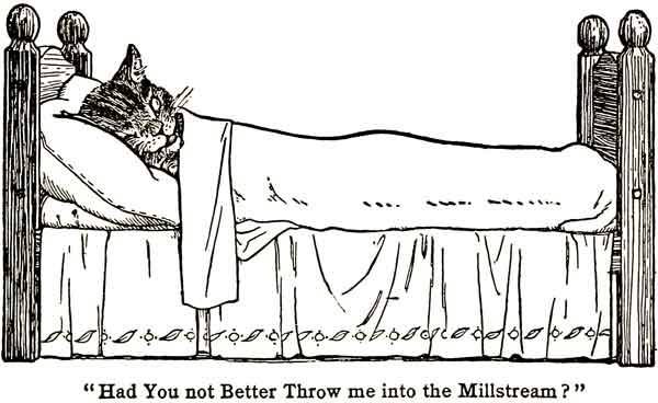 But Miss Puss, when she heard it, called out: "Had you not better throw me into the mill stream?"