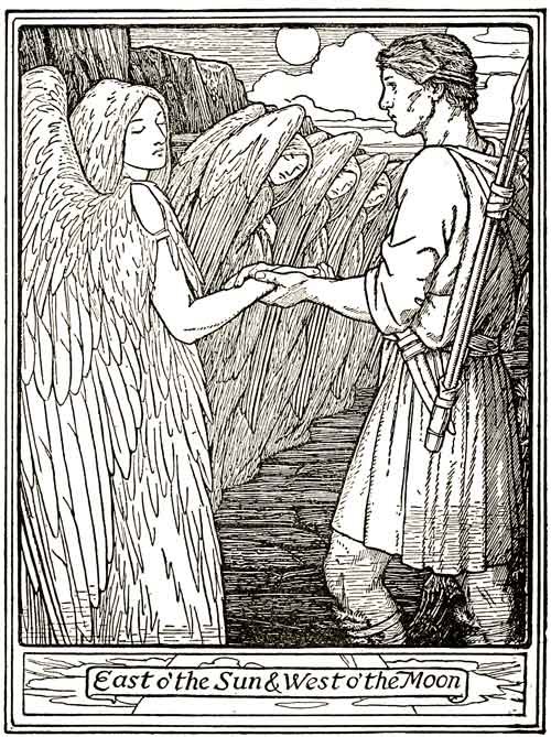 Then the old man asked him what he was doing and where he was going. And he told him all about the swan maidens and his wife, and he asked the old man if he had heard of the Land East o' the Sun and West o' the Moon.