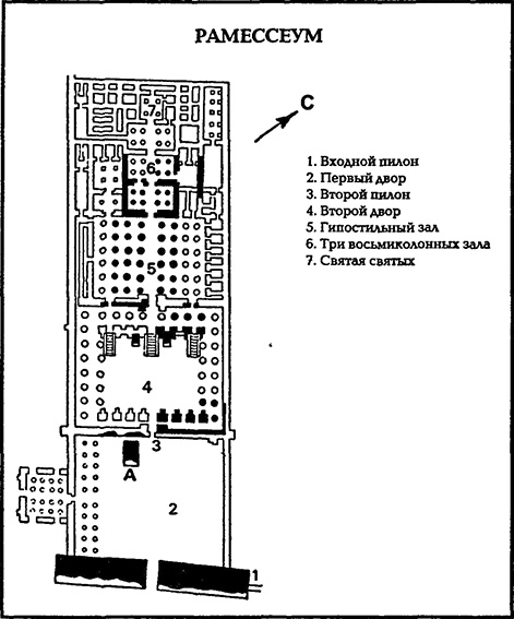 В Рамессеуме хорошо видно, как в крупных святилищах происходило общение между землей и небом, видимым и невидимым мирами, богами и людьми[50].