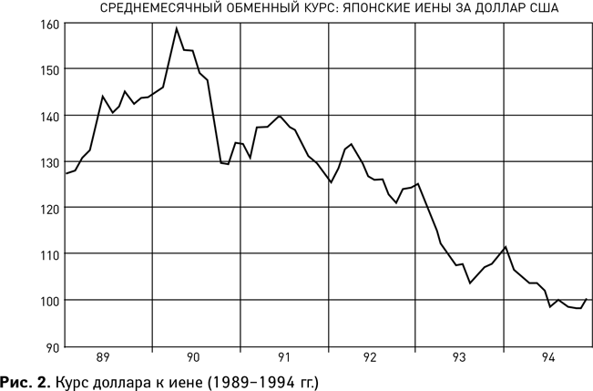 2. Колебания цены доллара в иенах (см. рис. 2, показывающий изменение курса валют), или обменного курса.